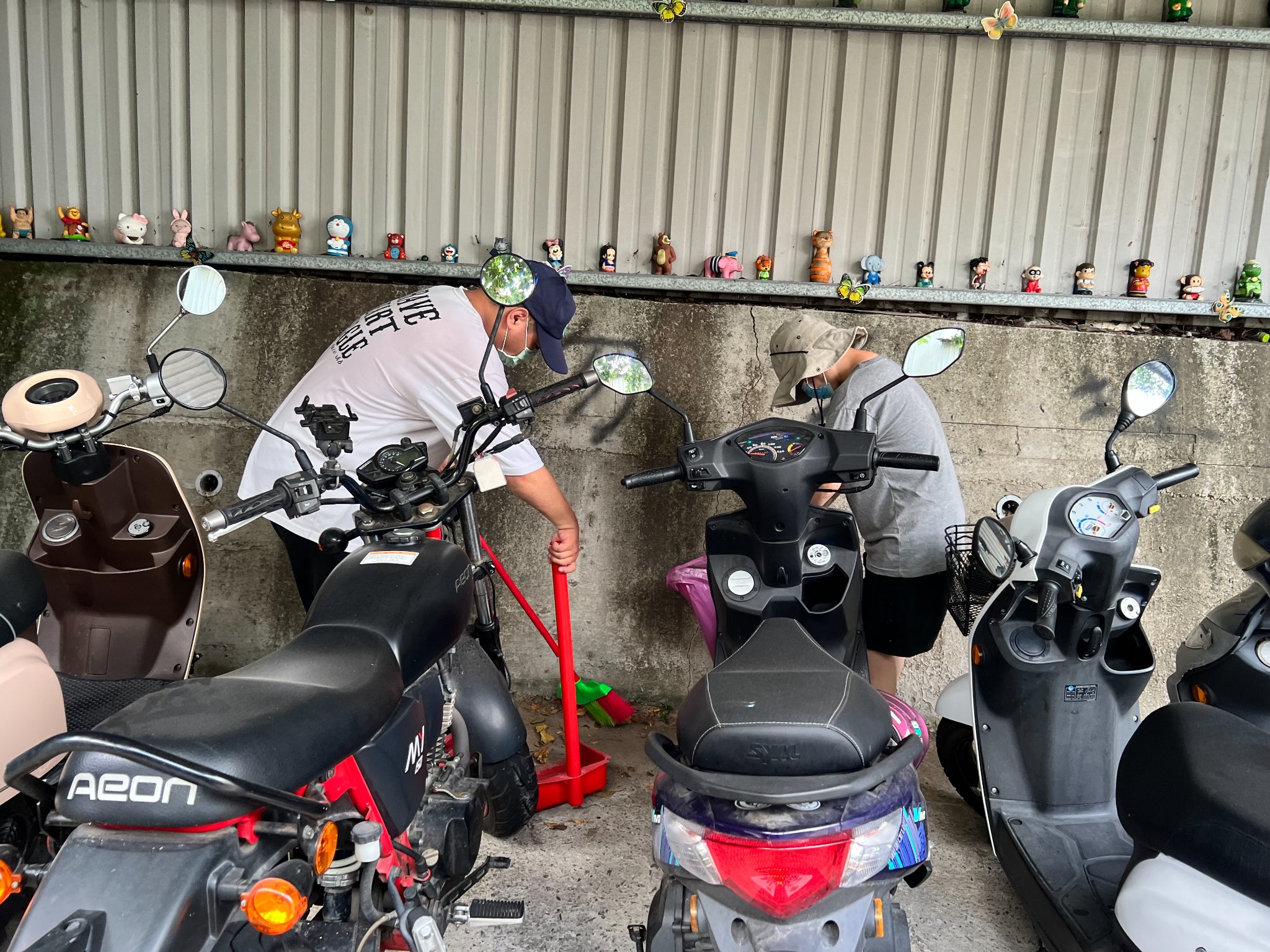 外出打掃都會配戴口罩、遮陽帽。